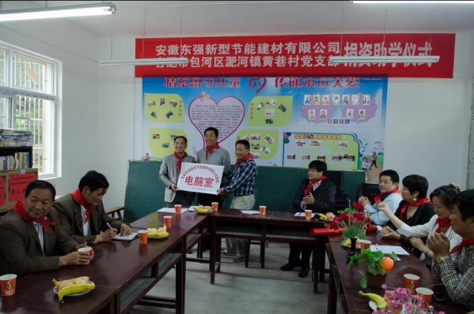 在捐資儀式上,董事長(zhǎng)倪修倫親手將十臺(tái)價(jià)值三萬余元電腦,交給了涼亭小學(xué)校長(zhǎng)手上。董事長(zhǎng)說,作為一個(gè)成熟的企業(yè)來說,有責(zé)任關(guān)愛山區(qū)的教育事業(yè),今天的捐贈(zèng)活動(dòng)是關(guān)愛山區(qū)教育事業(yè)的第一步,今后要把關(guān)愛行動(dòng)持續(xù)下去??偨?jīng)理深情的說,今天回到家鄉(xiāng),回到母校,倍感親切,我懷著感恩的心,報(bào)答家鄉(xiāng),報(bào)答母校。合肥市包河區(qū)淝河鎮(zhèn)黃巷村黨總支也向涼亭小學(xué)捐贈(zèng)了電腦操作臺(tái),書記黃帥在捐贈(zèng)儀式上作了講話。